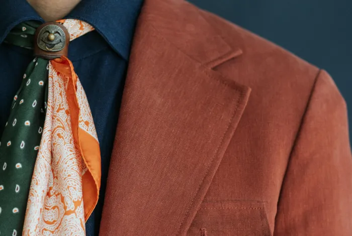 The lapel roll is the natural curve that forms as the lapel descends from collar to button stance. Achieved through expert pressing and the shaping of a hand-padded canvas, it embodies the “life” of the jacket. Unlike flat, machine-pressed lapels, a gentle roll conveys depth, softness, and an elegance that can only come from artisanal work.